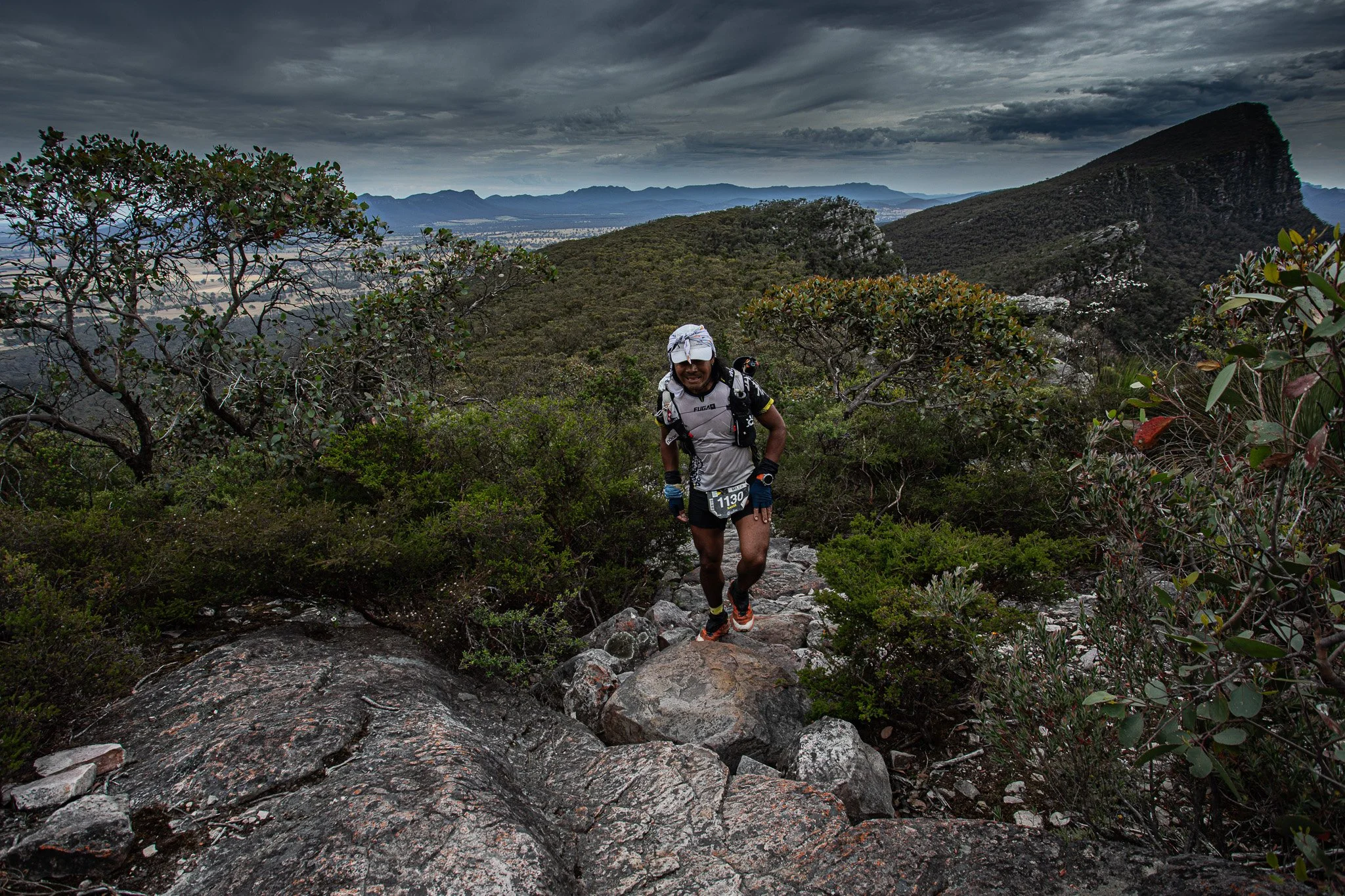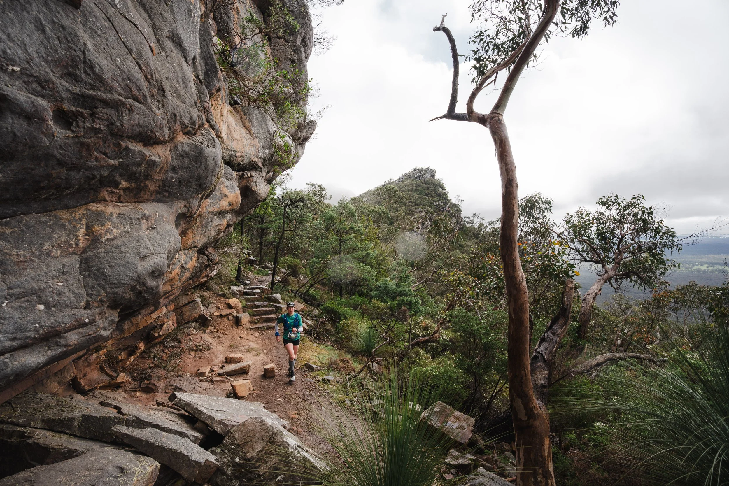 From Cassidys is the big test, the climbs of Signal Peak and Mt Abrupt (Mud-Dadjug). These are two big mountains that can be seen from everywhere. They stand out and the climbs up them on mostly stepped trails are very challenging. Take in the view from the summit of Mud-Dadjug as it is one of the finest points along the GPT. The descent is hard and choppy, often along big rock slabs to Bainggug Car Park aid station.